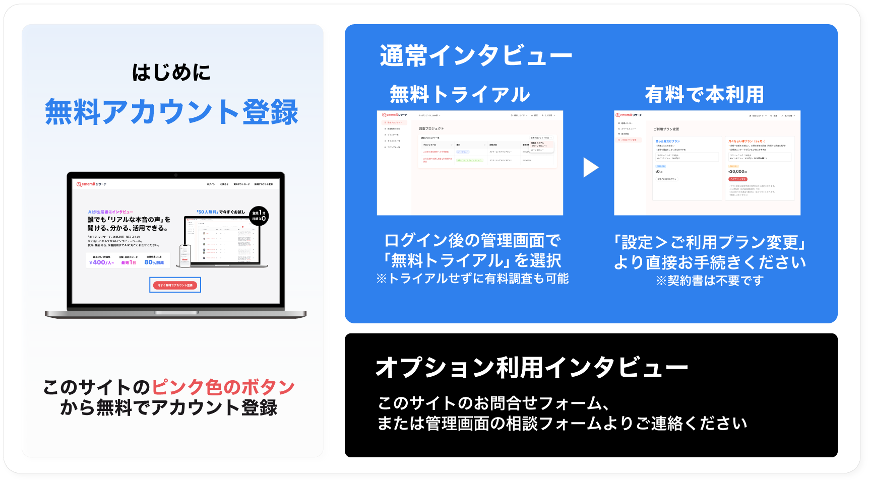 ※無料トライアル調査出稿の有効期限はアカウント発行から1ヶ月間です。 ※本無料トライアルは、予告なく終了する可能性がございます。 ※アカウントは登録いただいて通常即時発行されますが、審査を通過しない場合ご利用いただけないことがございます。